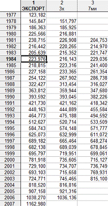 интервальным рядам. Уровни ряда представляют собой объёмы экспорта и импорта