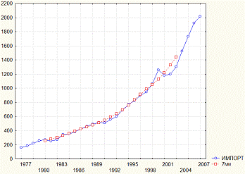 импорта США в период с 1977 по 2007 гг.. (млрд. $)
