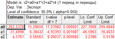 Рис. 60. Результаты расчета параметров линейной модели тренда