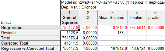Рис.57. Результаты дисперсионного анализа линейной модели тренда
