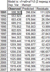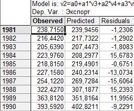 Рис. 66. Таблица наблюдаемых, прогнозных значений и остатков для