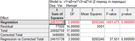Рис. 69. Результаты дисперсионного анализа линейной модели тренда