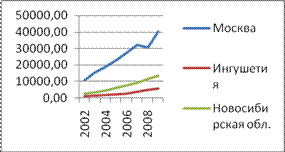анализ Москвы, республики Ингушетия и Новосибирской области.