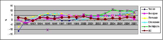 стране. В 1998-1999 гг., 2002‑2004 и 2006 гг. наблюдается спад темпов