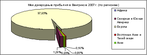 распределение международных туристских прибытий в Венгрию в 2007 г.