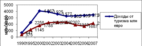 доли поступлений от туризма (в 1997 гг. этот показатель превысил 60%) больше