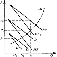 фирмы X (он будет сдвигаться влево), если Y начнет расширять продажу. Цена и объем производства, устанавливаемые
