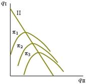 если фирма I уменьшит предложение на рынке, поэтому вершины изопрофит