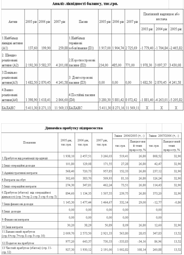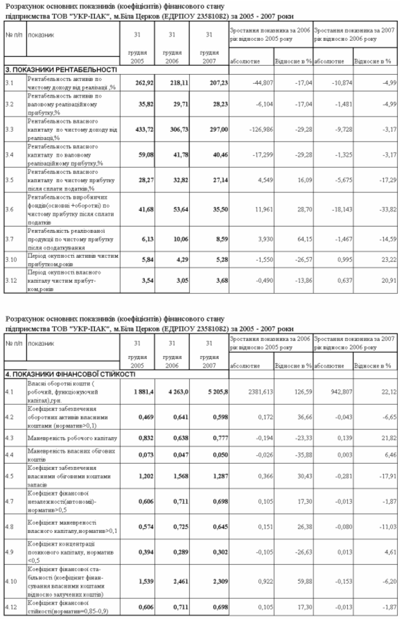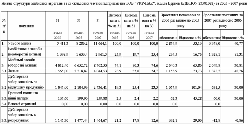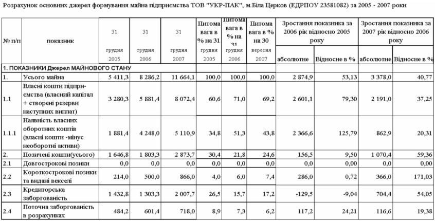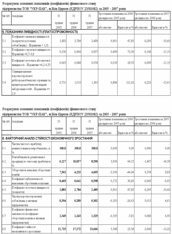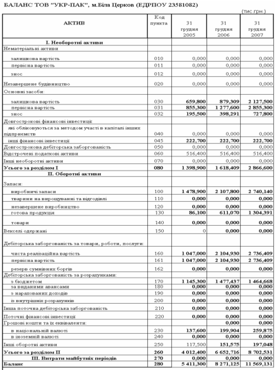- товариства з обмеженою відповідальністю ТОВ "УКР-ПАК" за 2005 - 2007 роки, виявлення основних проблем його економічного