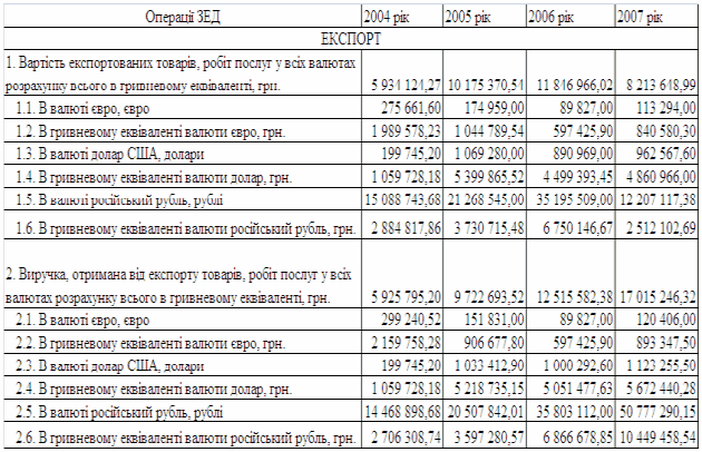 діяльності підприємства в зовнішньоекономічному сегменті ринку.
