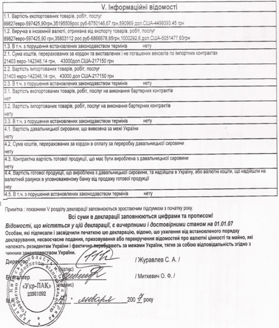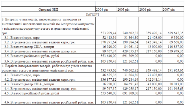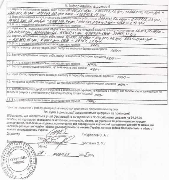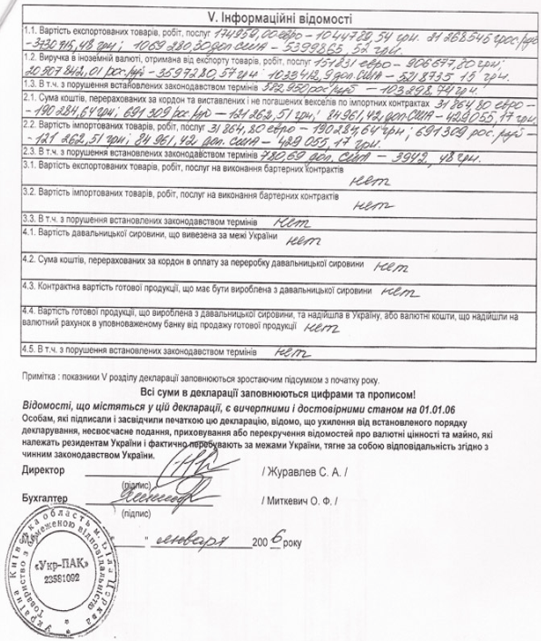 про обсяги експортно-імпортних операцій ТОВ "УКР-ПАК" у 2005 –2006