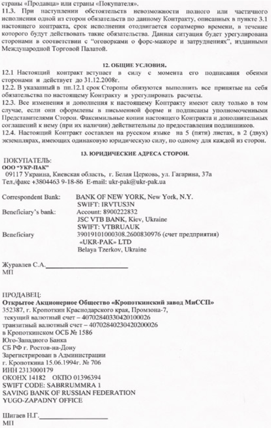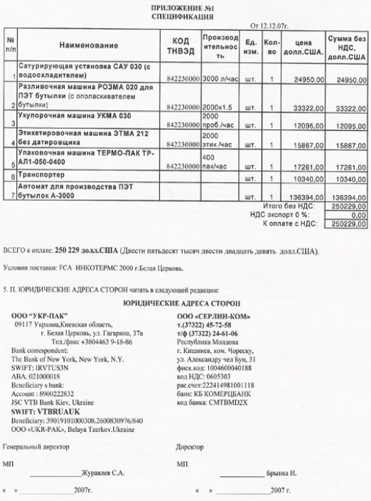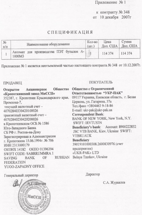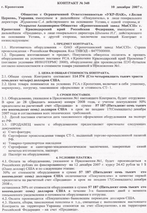 контракту ТОВ "УКР-ПАК" 2007 року на поставку комплексної лінії
