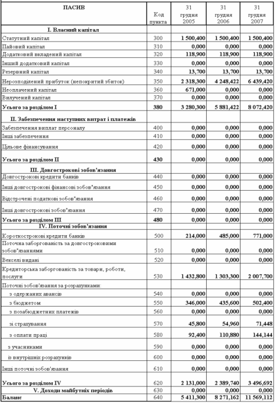 про фінансові результати діяльності ТОВ "УКР-ПАК" за 2005 –2007 роки