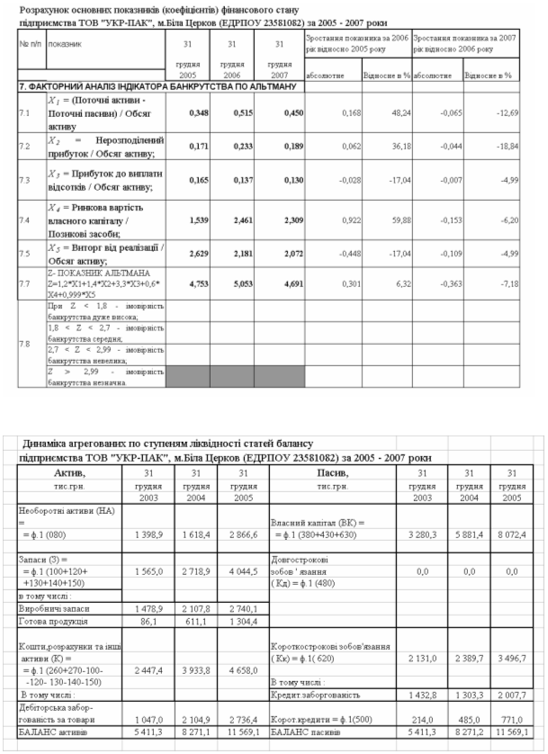 звітності підприємства, аналіз фінансових коефіцієнтів, програмно-математичне