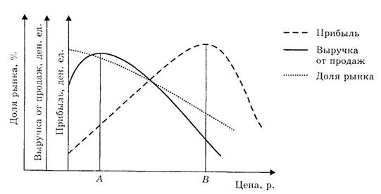 оптимального соотношения между ценой, прибылью, выручкой от продаж и долей