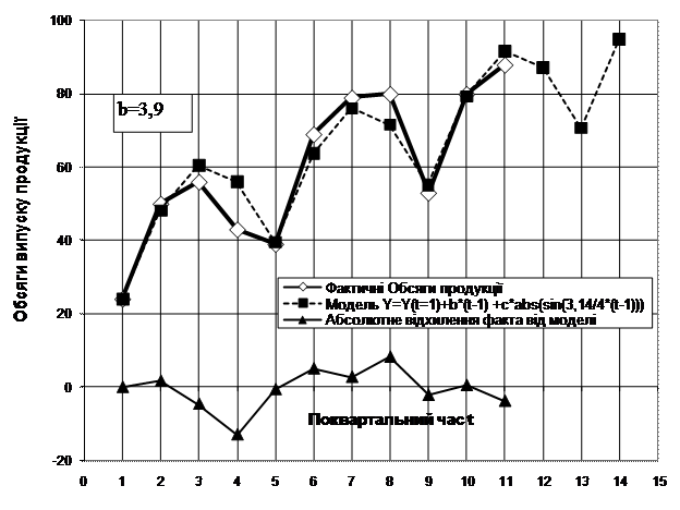 значенні квартальних обсягів випуску продукції на основі моделі з адитивною