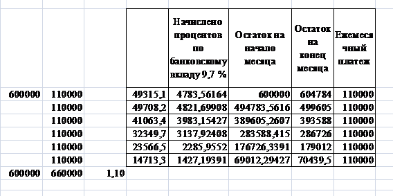 110000 руб. в конце каждого следующего месяца в течении полугода. Вы могли бы