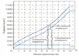 При нулевом объеме производства общие издержки равны постоянным издержкам