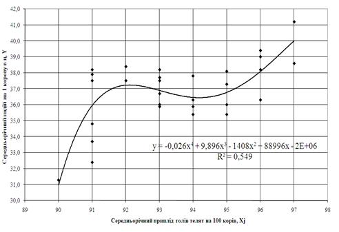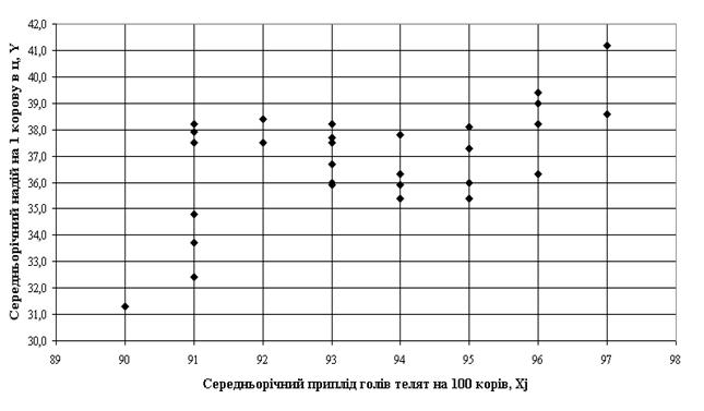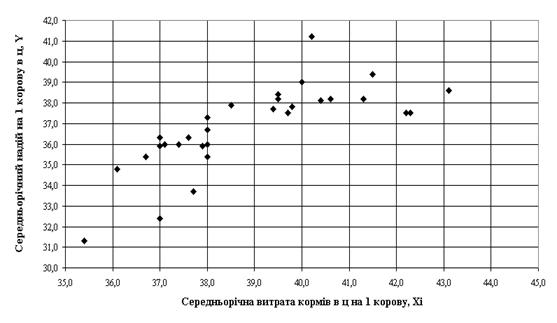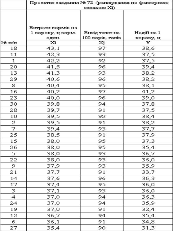продуктивності корів по середньорічним надоям молока Y=F(Xi) та Y=f(Xj). Як