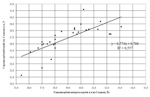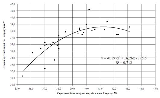 надоями молока та факторними ознаками – кількістю затрачених кормів на