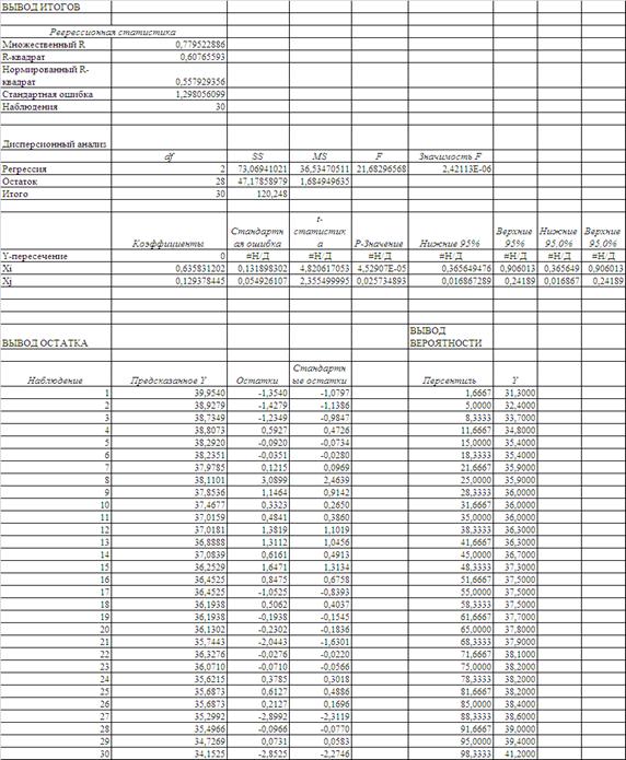 значущим вільним членом) = 25,038 (n=30)> 3,33 (табл. критерій Фішера);