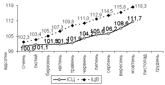 2.1 Статистика інфляційного індексу споживчих цін на товари