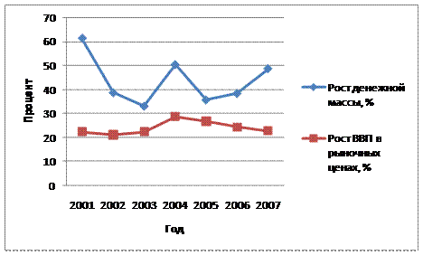 Динамика сопоставления денежной массы и финансовых вложений в экономику