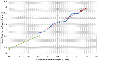 механізації. Отримавши функцію: Yi= 0,395+0,044x та