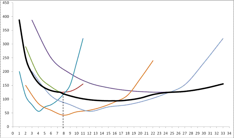 Вона є кривою, що огинає всі можливі криві короткострокових середніх загальних