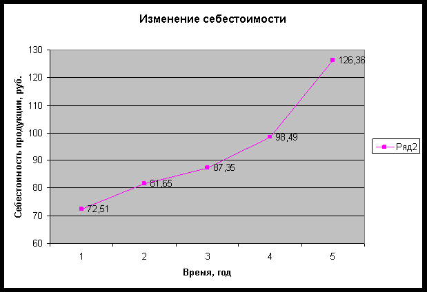 рисунке 3.1 представлено графическое изображение изменеия себестоимости под