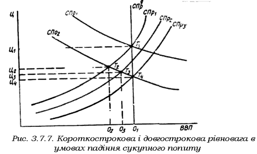короткострокова реакція на скорочення сукупного попиту буде обумовлюватися тим,
