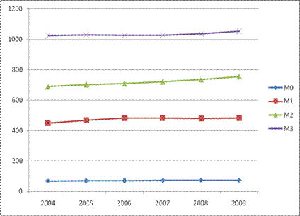 квазі грошей. Значний спад ставок по кредитам та депозитам був до 2005, після