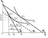 рівня добробуту на вищій кривій байдужості , в точці оптимуму. Перехід же від до