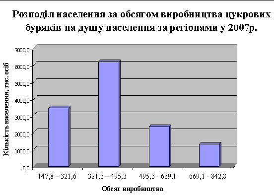 розподіл населення України по регіонах за обсягом виробництва цукрових