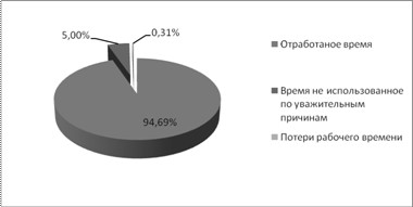 5,31% (100%-94,69%). Это время, не отработанное по уважительным причинам