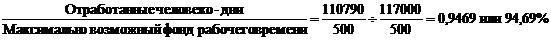 рабочего времени представляет собой отношение числа человеко-дней неявок на