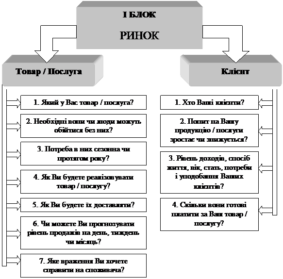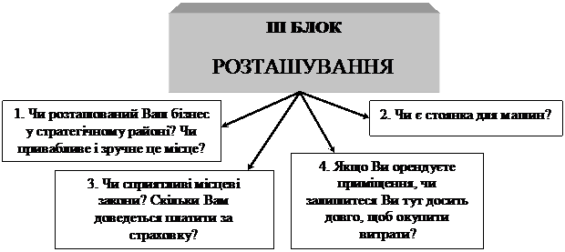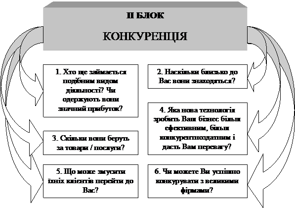 діяльності підприємств по 5 основним блокам (ринок, конкуренція, розташування,