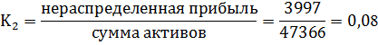 Z < 0,2 –высокая вероятность банкротства