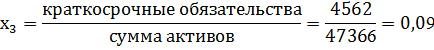 Z <0,037-вероятность банкротства малая.