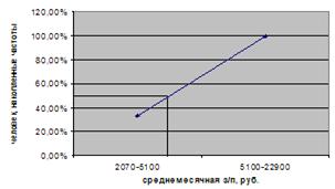 ранжированные значения варьирующего признака, а по оси ординат наносится шкала