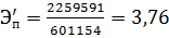 Кпр = (318220-68950)/2280814 * 100 = 10,9%