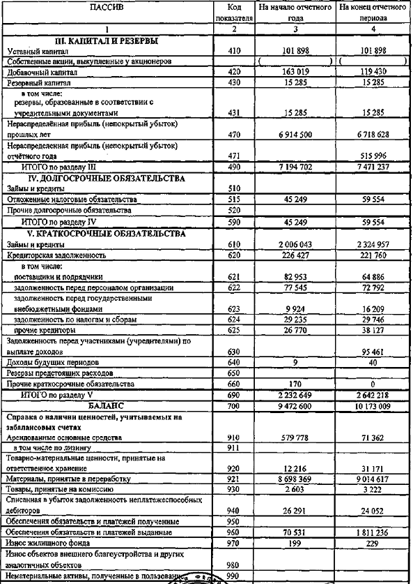 Табл.П.4 – Бухгалтерский баланс (ПАССИВ) на 31