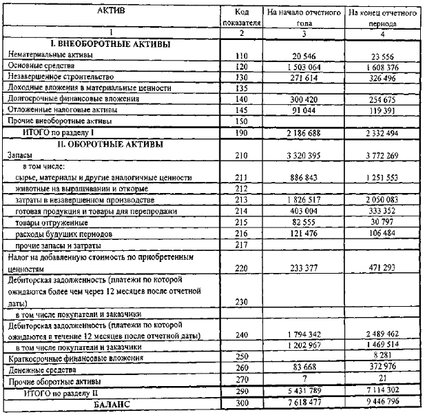 Табл.П.1 – Бухгалтерский баланс (АКТИВ) на 31
