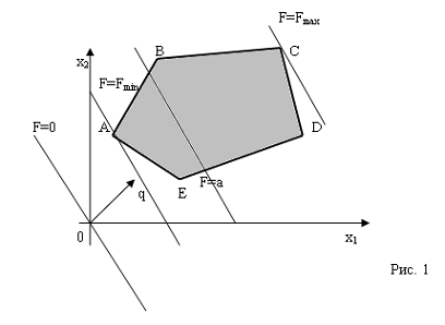 оптимального решения задачи в одной из угловых точек многоугольника(рис. 1) для