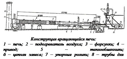 Вращающаяся печь состоит из корпуса с футеровкой, опоры с приводом, головки с