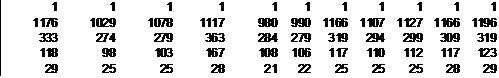 запишемо матрицю пояснбвальних змінних, яка буде містити: перший стовпчик –