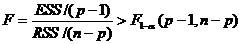 значениях статистики Фишера нулевая гипотеза отвергается, и какова вероятность