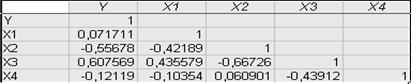 коэффициентов парной корреляции показывает, что фактор Х3(содержание лайкры)