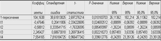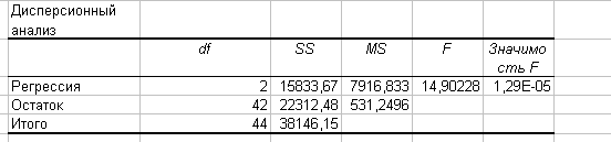 значимости уравнения регрессии в целом осуществляется по F – критерию Фишера: Fтабл.=