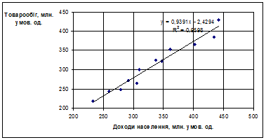 Зв’язок між роздрібним товарообігом і доходом населення носить прямолінійний
